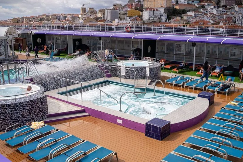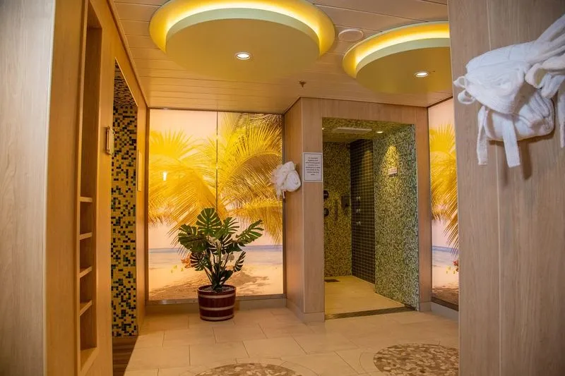 A calm, spacious sanctuary offering free access to the thermal suite, with sauna, steam and relaxation rooms overlooking the sea. A rare find at sea — wellness with a view, all included.