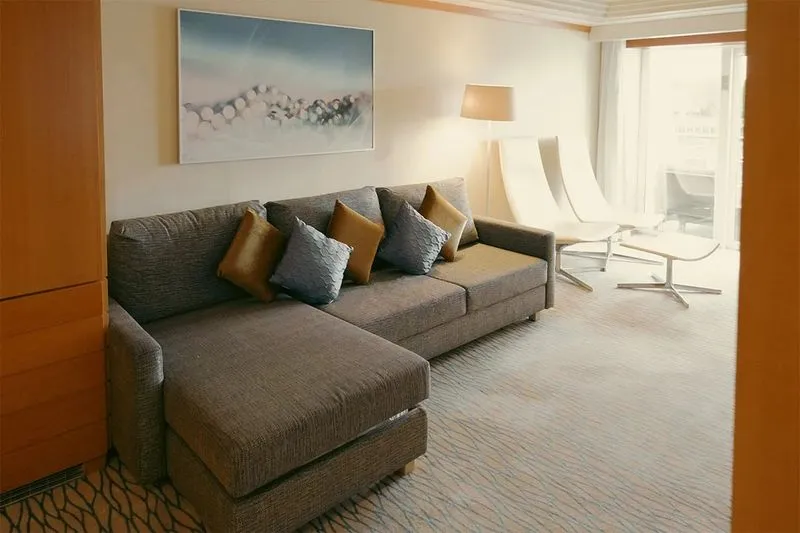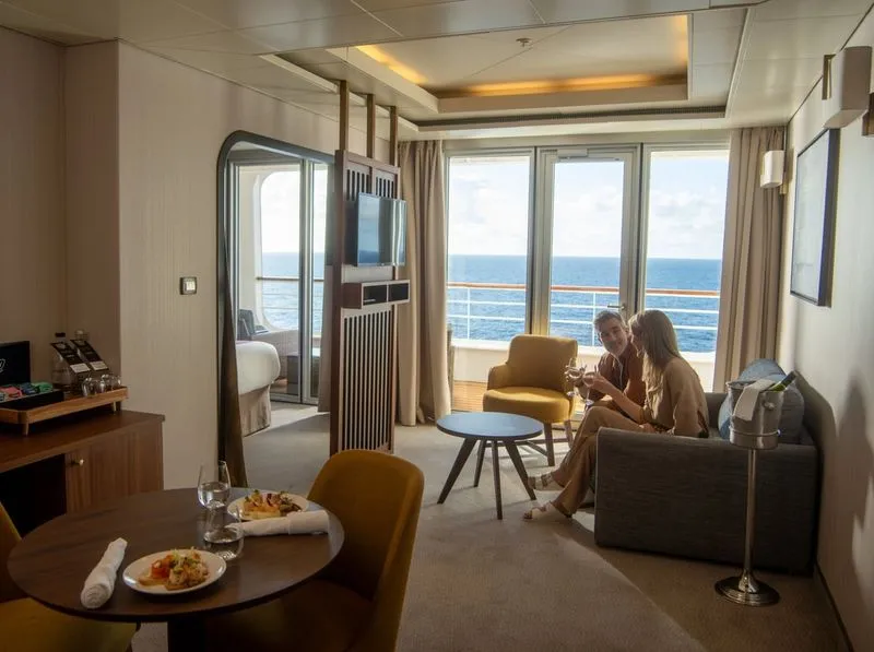 Suites are larger and often include extra living space and added touches that create a more spacious feel on board.