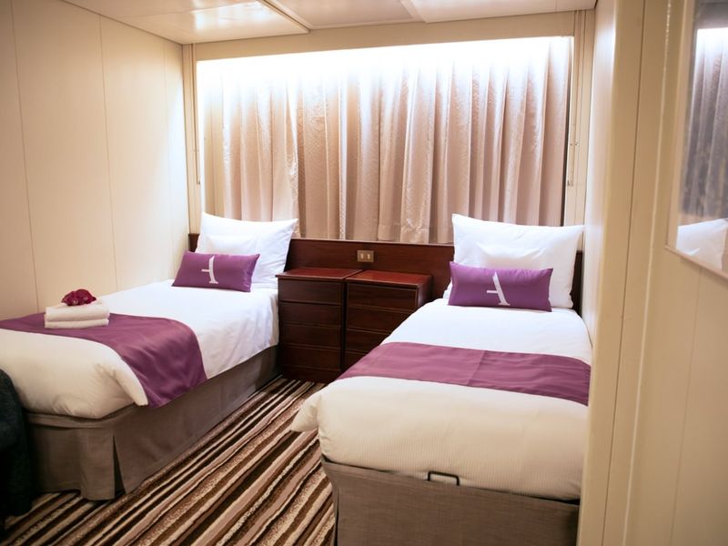 A cabin in a quieter area away from busy public venues, lifts and high-traffic corridors may suit light sleepers best. Cabin location can matter just as much as cabin type.