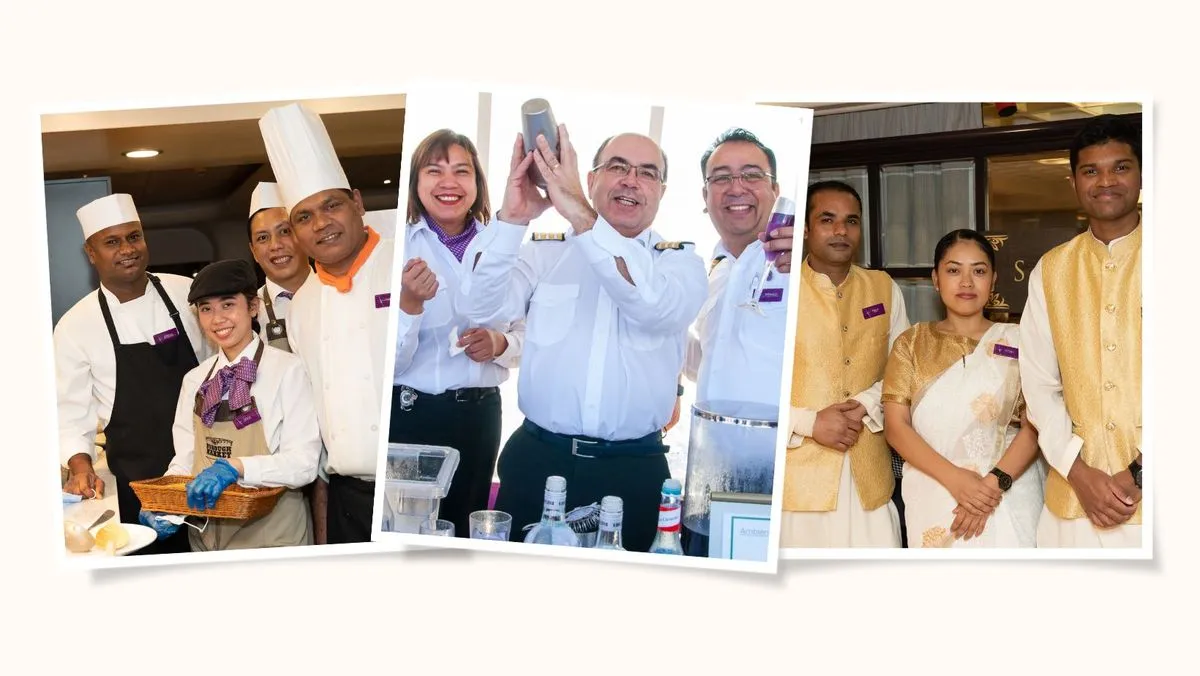 “Once we stepped on board, we saw more familiar faces. We instantly felt at home. Over the course of the 6 week’s cruise, we got to know many of the staff. They shared family stories with us and us with them. This is what sets Ambassador apart - everyone is part of a big family. One young waitress said she was disembarking on the same day as us. She was happy to be going home but sad that she couldn’t see her, as she put it, "English Mum and Dad" again.