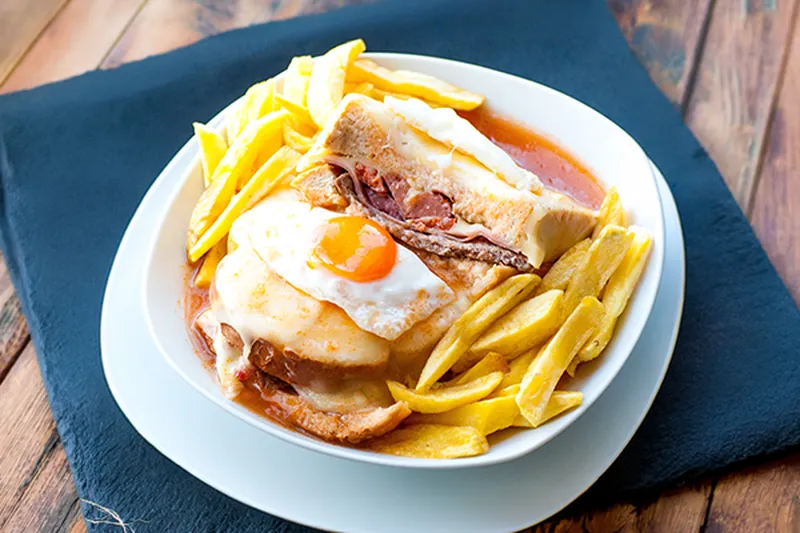 Porto’s famous dish, the francesinha, is a sandwich made of ham, sausage and steak, covered in melted cheese, and drenched in a spicy beer-based sauce. Surprisingly, this iconic Porto meal was inspired by the French croque-monsieur.