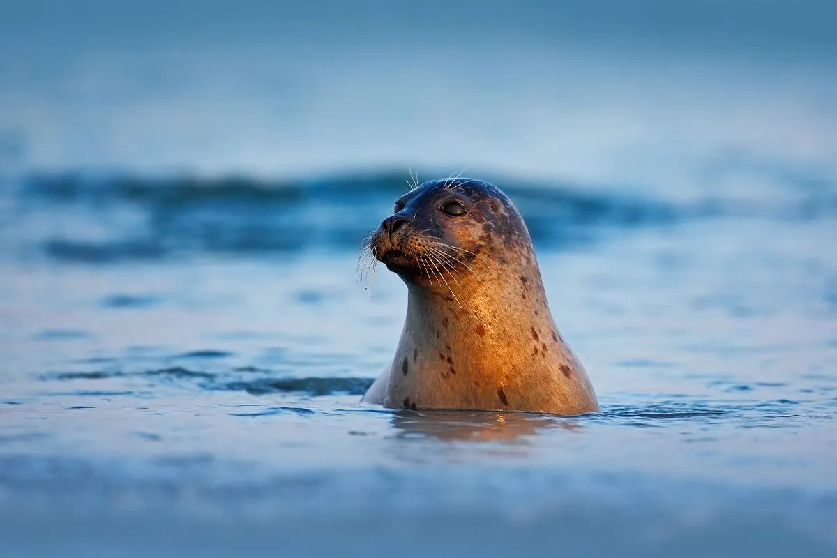 You can also see playful seals, especially on a cruise around the UK. Including grey seals, harbour seals and harp seals, they can often be seen lazing on rocks or swimming playfully with one another through the surf close to shore.