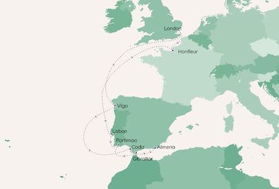 You’ll also be cruising down to sunnier shores, calling at seven ports across Spain, Gibraltar, Portugal and France. Think Vigo’s laid-back Galician coast, Cádiz and Almería in southern Spain, a stop in Gibraltar, then across to the Algarve at Portimão and on to Lisbon for a proper city fix, before finishing with a taste of Normandy in Honfleur, France.