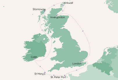 Discover the Scottish Highlands from Invergordon, visit prehistoric sites and Viking landmarks in Kirkwall, and experience traditional Gaelic culture in Stornoway. In Cobh, walk the colourful waterfront and explore Titanic heritage, or venture inland to discover Cork’s famous food scene. Enjoy the subtropical feel of St Mary’s in the Isles of Scilly, perfect for coastal walks, birdwatching and botanical gardens. Then explore St Peter Port in Guernsey - a harbour town filled with boutique shops, seaside charm and maritime history.