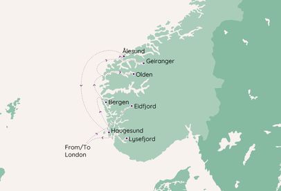 From Eidfjord, discover the natural beauty of the Hardanger region, with opportunities to visit waterfalls and striking viewpoints. In Bergen, explore the UNESCO-listed Bryggen waterfront, enjoy harbour-side dining and take in panoramic city views. Olden is a gateway to glacier scenery and tranquil valleys, while Geiranger offers one of Norway’s most famous fjords, framed by soaring cliffs and iconic waterfalls. In Ålesund, admire Art Nouveau architecture and coastal vistas, and in Haugesund experience Norway’s maritime history and Viking connections before returning to London Tilbury.