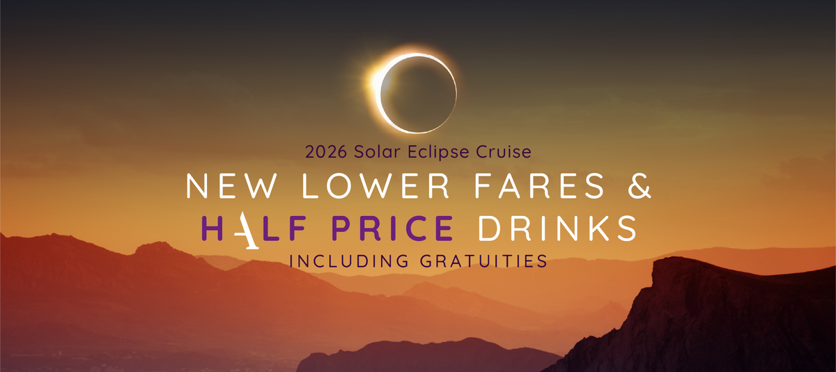 During totality, the sudden darkness may reveal a fleeting display of the Aurora Borealis dancing along the Arctic horizon. Swirls of green, pink and purple can shimmer across the sky, creating a magical counterpoint to the eclipsed Sun. Witnessing this rare combination — the Sun’s corona above and auroral light around you — transforms the deck into a front row seat to one of the most extraordinary sky spectacles on Earth.