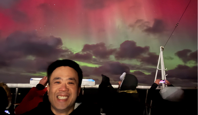 During totality, the sudden darkness may reveal a fleeting display of the Aurora Borealis dancing along the Arctic horizon. Swirls of green, pink and purple can shimmer across the sky, creating a magical counterpoint to the eclipsed Sun. Witnessing this rare combination — the Sun’s corona above and auroral light around you — transforms the deck into a front row seat to one of the most extraordinary sky spectacles on Earth.