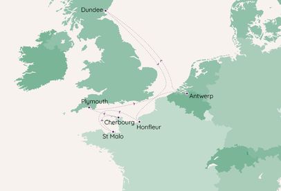 Begin in Honfleur, known for its picturesque harbour, colourful façades and artistic heritage. St Malo delivers dramatic contrast with its fortified walls, powerful tides and historic old town. Continue to Cherbourg, where wide harbours and naval history reflect a long seafaring tradition. Explore Antwerp, one of Europe’s best-preserved medieval cities, where cobbled streets and historic squares create a timeless atmosphere.