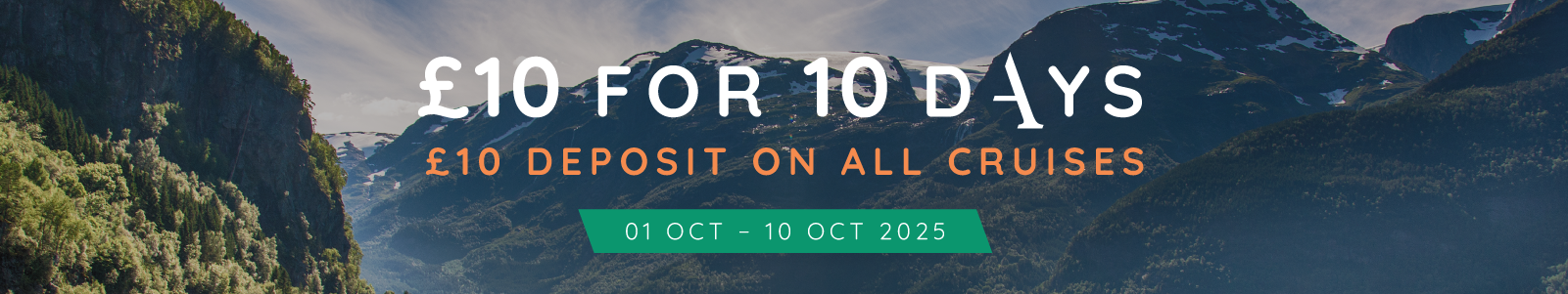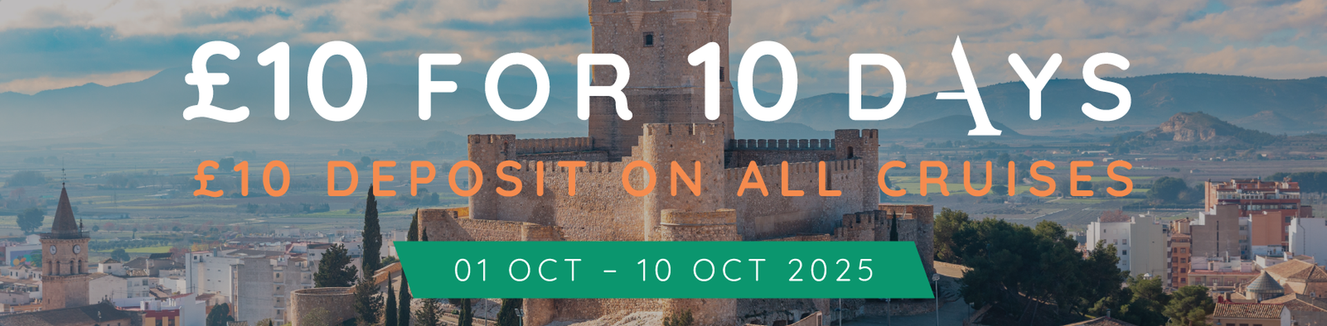 For 10 days only, you can look forward to your next unforgettable sailing with Ambassador by paying a deposit of just £10 per person.