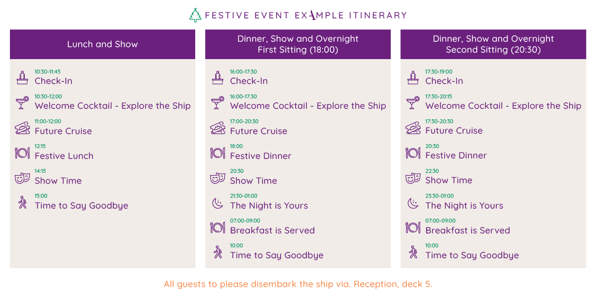 Whether you’re joining us for Christmas or New Year, our onboard festive events and sailings promise a holiday filled with joy, tradition, and celebration.
